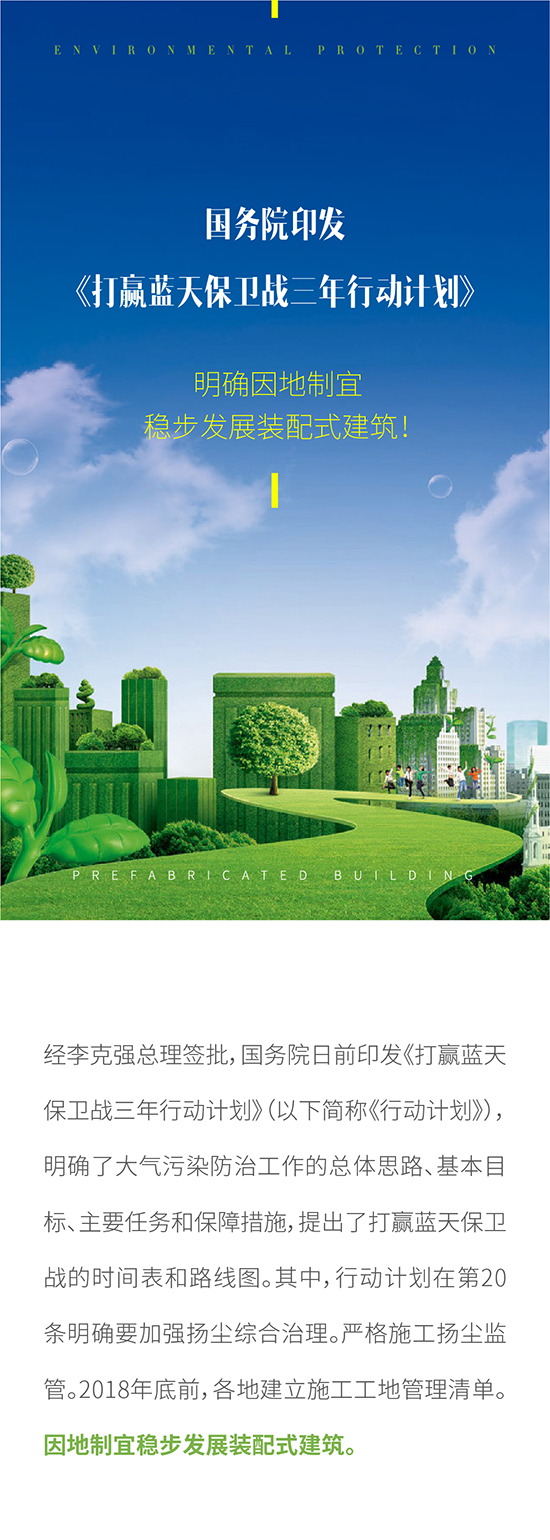 国务院印发《打赢蓝天保卫战三年行动计划》, 明确因地制宜稳步发展装配式建筑!