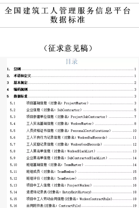 2.《全国建筑工人管理服务信息平台数据标准(征求意见稿)》